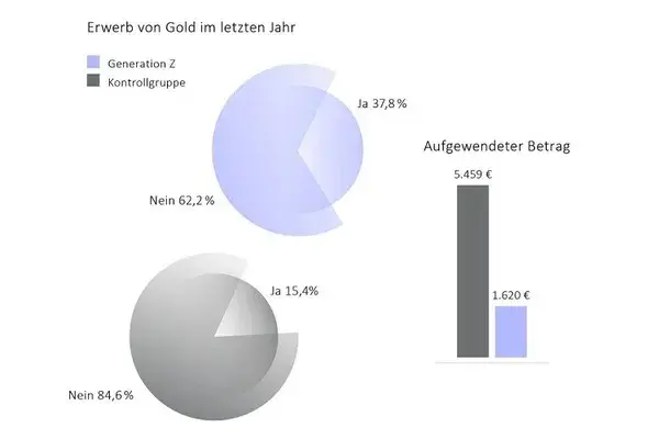 Diese Unsicherheiten können eine Erklärung für den stark gestiegenen Goldkauf durch die Gen Z sein. Demnach haben im letzten Jahr deutlich mehr Menschen dieser Jahrgänge Gold gekauft als die restlichen Befragten (37,8 Prozent gegenüber 15,4 Prozent). Dabei haben sie jedoch – auch infolge geringerer liquider Mittel – im Vergleich einen niedrigeren Betrag aufgewendet. So haben ältere Generationen im Schnitt etwa das Dreifache für Gold ausgegeben.